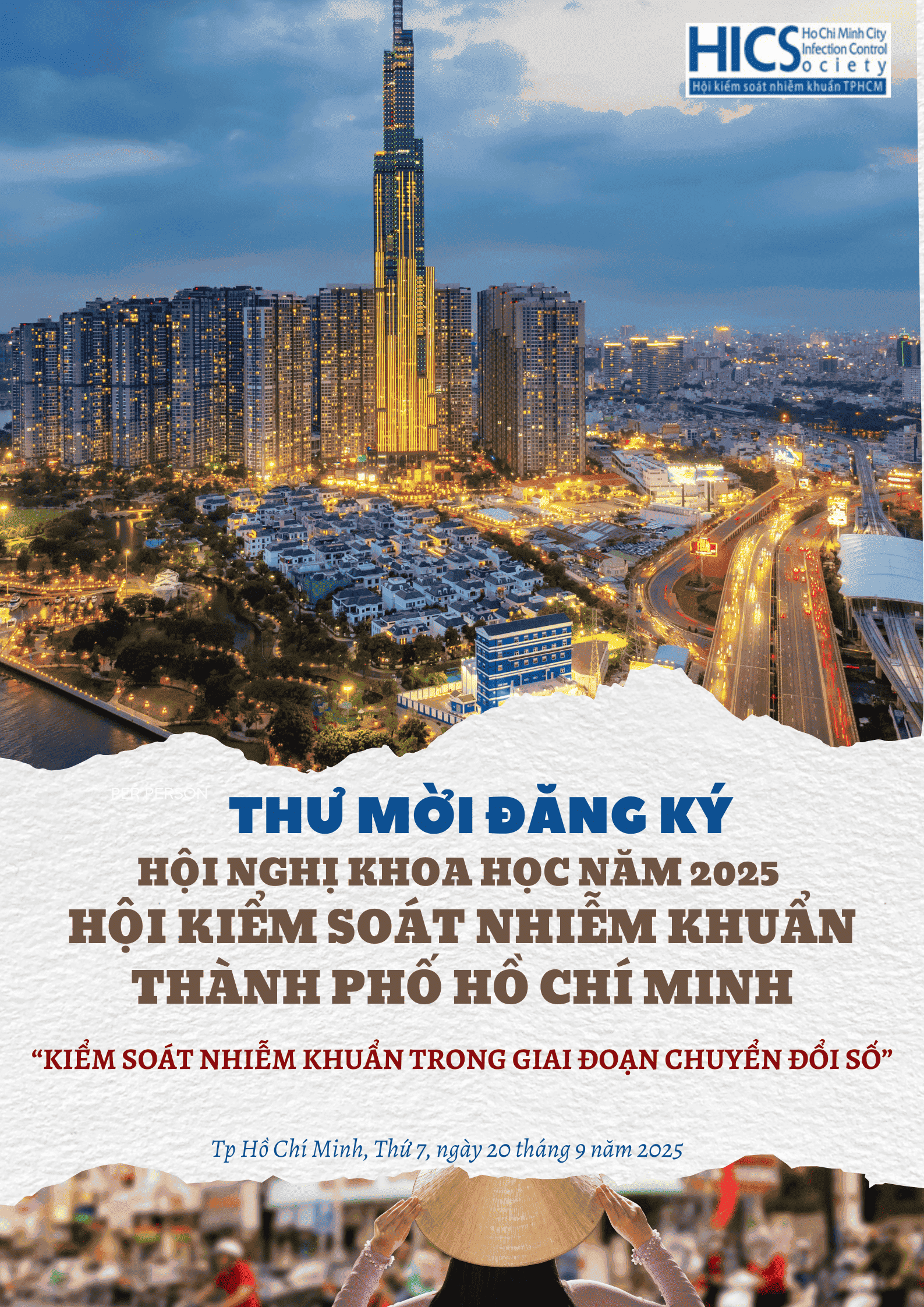 Nhằm tăng cường chia sẻ các kết quả nghiên cứu, sáng kiến thực hành hiệu quả và ứng dụng công nghệ trong kiểm soát nhiễm khuẩn, Hội Kiểm Soát Nhiễm Khuẩn Thành phố Hồ Chí Minh (HICS) trân trọng kính mời quý đồng nghiệp tham dự và gửi bài báo cáo khoa học cho Hội nghị Kiểm Soát Nhiễm Khuẩn năm 2025 với chủ đề: